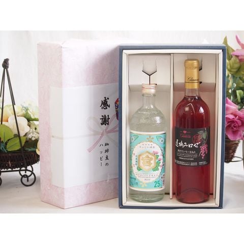 春の贈り物便り 感謝の贈り物ボックス 絶大な人気を誇るキンミヤ焼酎と国産ワイン2本セット(遅摘みロゼ 完熟甘口ワイン 甘口(山梨県)720mlキンミヤ焼酎25度(三重県)720ml