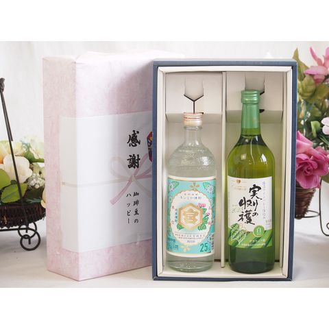春の贈り物便り 感謝の贈り物ボックス 絶大な人気を誇るキンミヤ焼酎と国産ワイン2本セット(実りの収穫 白甘口ワイン 甘口(山梨県)720mlキンミヤ焼酎25度(三重県)720ml