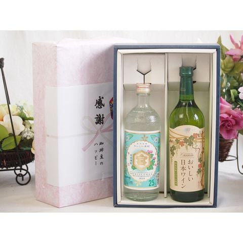 春の贈り物便り 感謝の贈り物ボックス 絶大な人気を誇るキンミヤ焼酎と国産ワイン2本セット(国産葡萄100%使用 おいしい日本ワイン 白ワイン やや辛口(山梨県)720mlキンミヤ焼酎25度(三重県)720ml