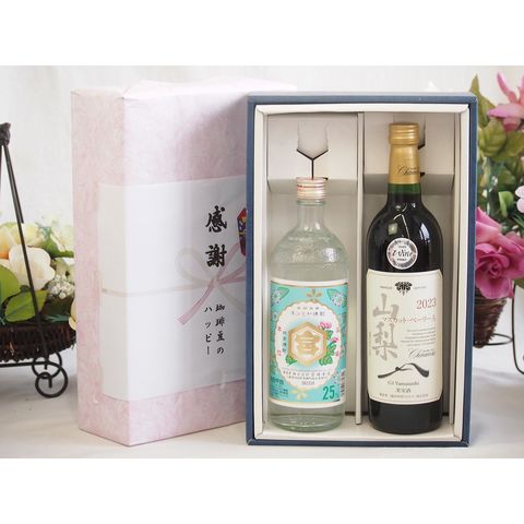 春の贈り物便り 感謝の贈り物ボックス 絶大な人気を誇るキンミヤ焼酎と国産ワイン2本セット(山梨 マスカットベーリーA 赤ワイン 重口(山梨県)750mlキンミヤ焼酎25度(三重県)720ml