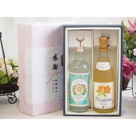春の贈り物便り 感謝の贈り物ボックス 絶大な人気を誇るキンミヤ焼酎と国産ワイン2本セット(北海道の詩 完熟ナイヤガラ白ワイン 甘口(北海道)720mlキンミヤ焼酎25度(三重県)720ml