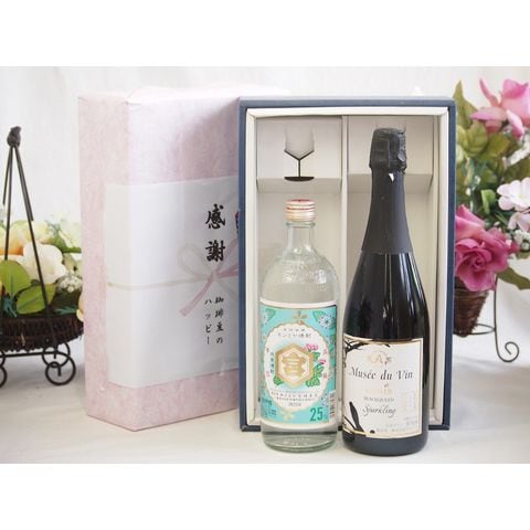 春の贈り物便り 感謝の贈り物ボックス 絶大な人気を誇るキンミヤ焼酎と国産ワイン2本セット(MdV オアシス ブラッククイーン白スパークリングワイン辛口(長野県)750mlキンミヤ焼酎25度(三重県)720ml