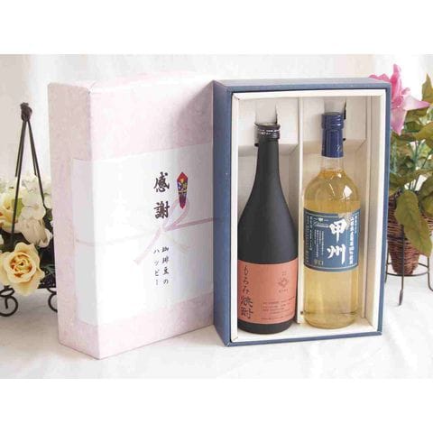 春の贈り物便り 感謝の贈り物ボックス 酒粕だけの焼酎と国産ワインセット(山梨県産葡萄100%使用 甲州 辛口白ワイン 辛口(山梨県)720ml大分県井上酒造もろみ焼酎32度 720ml