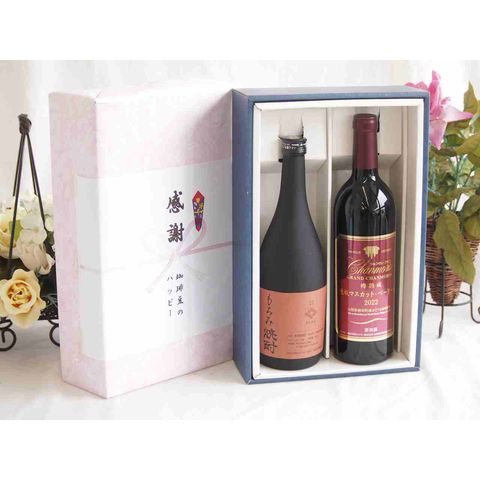 春の贈り物便り 感謝の贈り物ボックス 酒粕だけの焼酎と国産ワインセット(樽熟成穂坂マスカットベーリーA赤ワイン ミディアム(山梨県)750ml大分県井上酒造もろみ焼酎32度 720ml