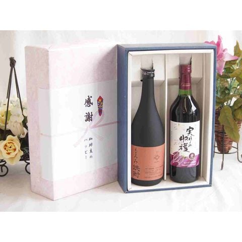 春の贈り物便り 感謝の贈り物ボックス 酒粕だけの焼酎と国産ワインセット(実りの収穫 赤ワイン やや甘口(山梨県)720ml大分県井上酒造もろみ焼酎32度 720ml