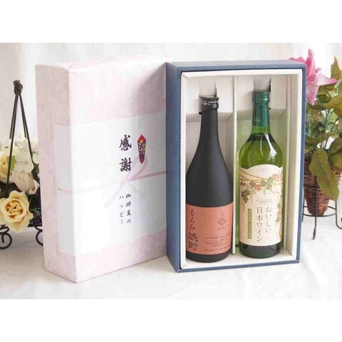 春の贈り物便り 感謝の贈り物ボックス 酒粕だけの焼酎と国産ワインセット(国産葡萄100%使用 おいしい日本ワイン 白ワイン やや辛口(山梨県)720ml大分県井上酒造もろみ焼酎32度 720ml