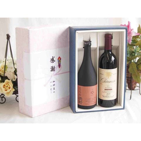 春の贈り物便り 感謝の贈り物ボックス 酒粕だけの焼酎と国産ワインセット(グランシャンモリ アッサンブラージュ 赤ワイン 重口(山梨県)750ml大分県井上酒造もろみ焼酎32度 720ml