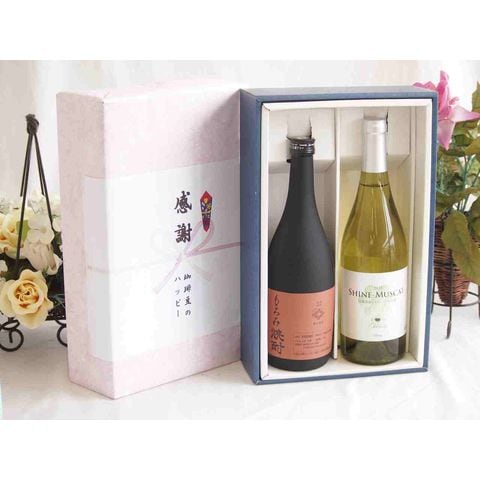 春の贈り物便り 感謝の贈り物ボックス 酒粕だけの焼酎と国産ワインセット(シャインマスカット100白ワイン やや甘口(山梨県)750ml大分県井上酒造もろみ焼酎32度 720ml