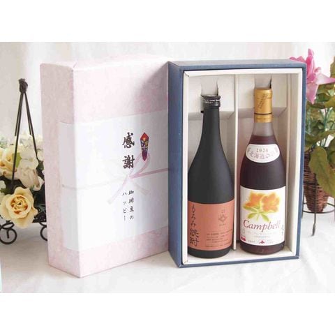 春の贈り物便り 感謝の贈り物ボックス 酒粕だけの焼酎と国産ワインセット(北海道の詩 プレミアムキャンベル赤ワイン 甘口(北海道)720ml大分県井上酒造もろみ焼酎32度 720ml