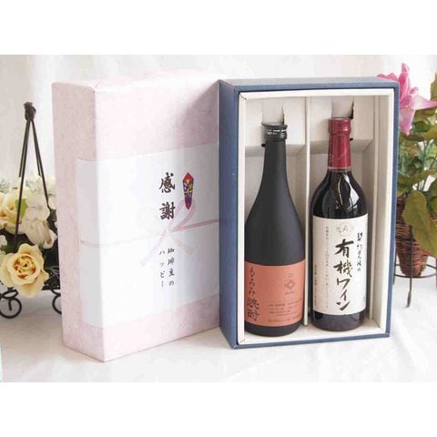 春の贈り物便り 感謝の贈り物ボックス 酒粕だけの焼酎と酸化防止剤無添加ワインセット(酸化防止剤無添加 契約農場の有機赤ワイン やや甘口(長野県)720ml大分県井上酒造もろみ焼酎32度 720ml