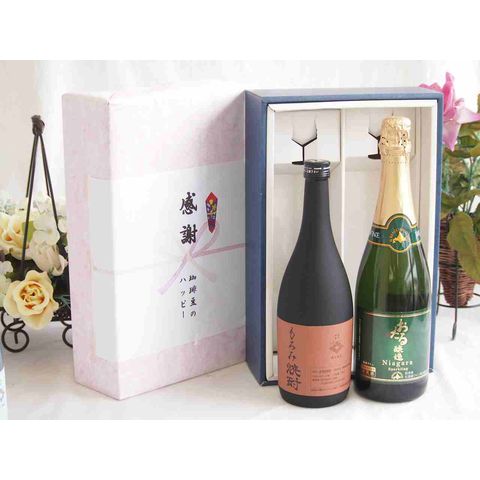 春の贈り物便り 感謝の贈り物ボックス 酒粕だけの焼酎と国産ワインセット(おたる醸造 ナイアガラス白パークリングワインやや甘口(北海道)720ml大分県井上酒造もろみ焼酎32度 720ml