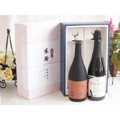 春の贈り物便り 感謝の贈り物ボックス 酒粕だけの焼酎と国産ワインセット(MdV オアシス ブラッククイーン白スパークリングワイン辛口(長野県)750ml大分県井上酒造もろみ焼酎32度 720ml