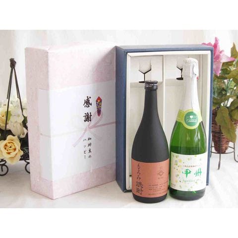 春の贈り物便り 感謝の贈り物ボックス 酒粕だけの焼酎と国産ワインセット(勝沼仕込みの甲州白スパークリングワインやや辛口(山梨県)720ml大分県井上酒造もろみ焼酎32度 720ml
