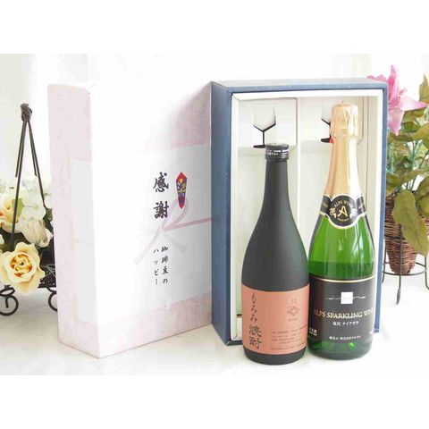 春の贈り物便り 感謝の贈り物ボックス 酒粕だけの焼酎と国産ワインセット(塩尻ナイアガラスパークリング白ワインやや甘口(長野県)720ml大分県井上酒造もろみ焼酎32度 720ml
