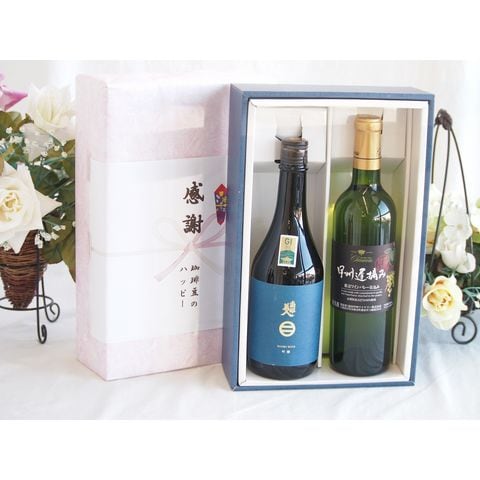 春の贈り物便り 感謝の贈り物ボックス 上品な香り南部美人と国産ワインセット(甲州遅摘み 白 完熟甘口ワイン 甘口(山梨県)720ml日本酒南部美人吟醸 (岩手県)720ml