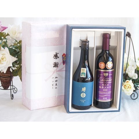 春の贈り物便り 感謝の贈り物ボックス 上品な香り南部美人と国産ワインセット(樽熟成松本メルロ赤ワイン フルボディ(山梨県)750ml日本酒南部美人吟醸 (岩手県)720ml