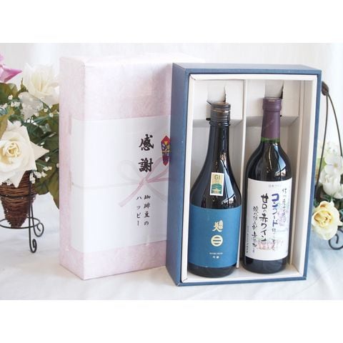 春の贈り物便り 感謝の贈り物ボックス 上品な香り南部美人と国産ワインセット(酸化防止剤無添加 信州コンコード赤ワイン 甘口(長野県)720ml日本酒南部美人吟醸 (岩手県)720ml