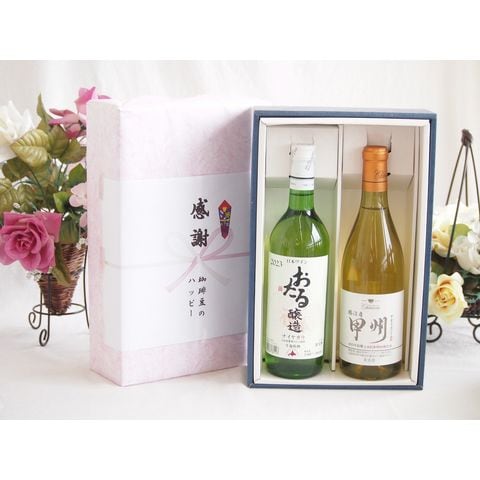 春の贈り物便り 感謝の贈り物ボックス おたる生葡萄100%ナイアガラワインと国産ワイン2本セット(勝沼産 甲州 白ワイン やや甘口(山梨県)720mlナイアガラ白ワイン やや甘口(北海道)720ml