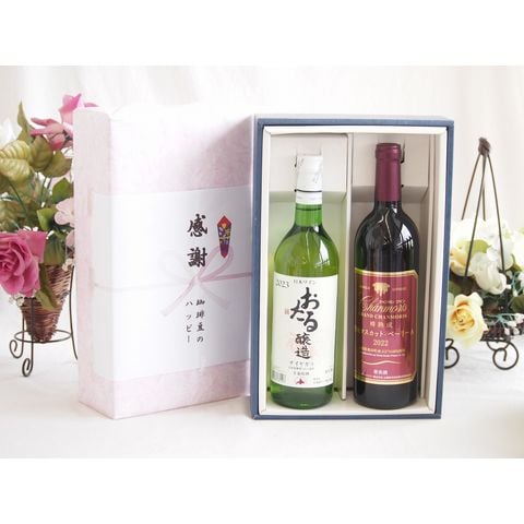 春の贈り物便り 感謝の贈り物ボックス おたる生葡萄100%ナイアガラワインと国産ワイン2本セット(樽熟成穂坂マスカットベーリーA赤ワイン ミディアム(山梨県)750mlナイアガラ白ワイン やや甘口(北海道)720ml