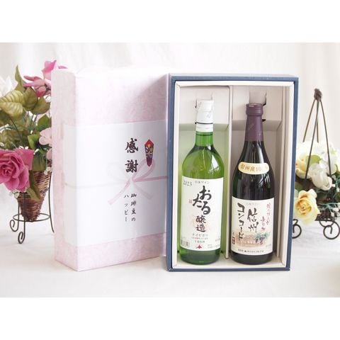 春の贈り物便り 感謝の贈り物ボックス おたる生葡萄100%ナイアガラワインと国産ワイン2本セット(酸化防止剤無添加 信州コンコード赤ワイン 中口(長野県)720mlナイアガラ白ワイン やや甘口(北海道)720ml