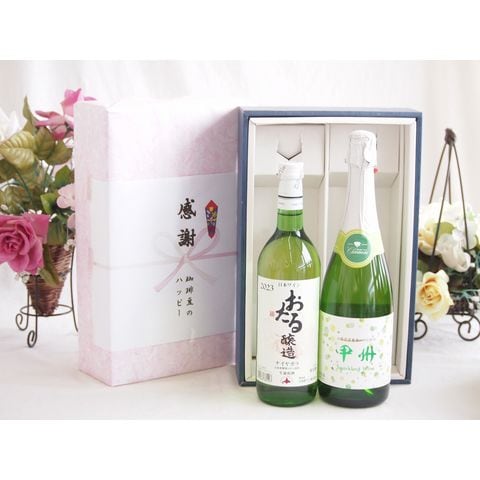 春の贈り物便り 感謝の贈り物ボックス おたる生葡萄100%ナイアガラワインと国産ワイン2本セット(勝沼仕込みの甲州白スパークリングワインやや辛口(山梨県)720mlナイアガラ白ワイン やや甘口(北海道)720ml