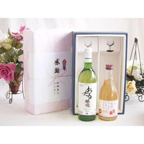 春の贈り物便り 感謝の贈り物ボックス おたる生葡萄100%ナイアガラワインと国産ワイン2本セット(信州のりんごを使ったワインです甘口(長野県)500mlナイアガラ白ワイン やや甘口(北海道)720ml