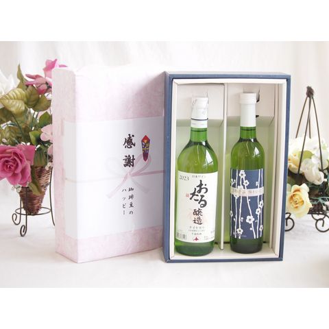春の贈り物便り 感謝の贈り物ボックス おたる生葡萄100%ナイアガラワインと国産ワイン2本セット(京都青谷 梅わいんワインやや甘口(京都府)500mlナイアガラ白ワイン やや甘口(北海道)720ml