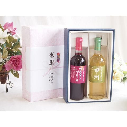 春の贈り物便り 感謝の贈り物ボックス 山梨県産葡萄マスカットベーリーA種使用ワインと国産ワイン2本セット(山梨県産葡萄100%使用 甲州白ワイン やや辛口(山梨県)720mlマスカットベーリーA赤ワイン720ml