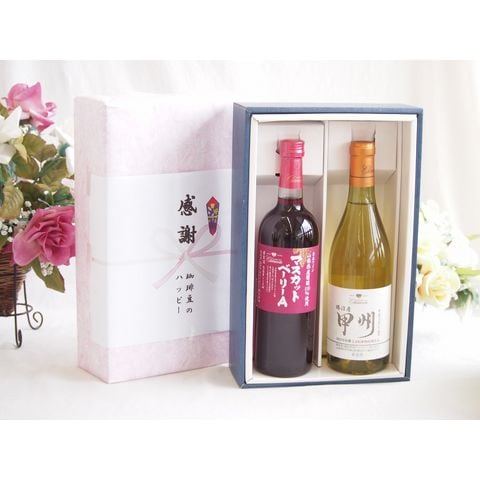 春の贈り物便り 感謝の贈り物ボックス 山梨県産葡萄マスカットベーリーA種使用ワインと国産ワイン2本セット(勝沼産 甲州 白ワイン やや甘口(山梨県)720mlマスカットベーリーA赤ワイン720ml