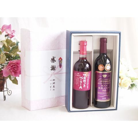 春の贈り物便り 感謝の贈り物ボックス 山梨県産葡萄マスカットベーリーA種使用ワインと国産ワイン2本セット(樽熟成松本メルロ赤ワイン フルボディ(山梨県)750mlマスカットベーリーA赤ワイン720ml