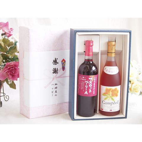 春の贈り物便り 感謝の贈り物ボックス 山梨県産葡萄マスカットベーリーA種使用ワインと国産ワイン2本セット(北海道の詩 プレミアムキャンベルロゼワイン 甘口(北海道)720mlマスカットベーリーA赤ワイン720ml