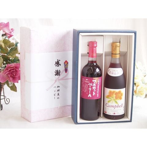 春の贈り物便り 感謝の贈り物ボックス 山梨県産葡萄マスカットベーリーA種使用ワインと国産ワイン2本セット(北海道の詩 プレミアムキャンベル赤ワイン 甘口(北海道)720mlマスカットベーリーA赤ワイン720ml