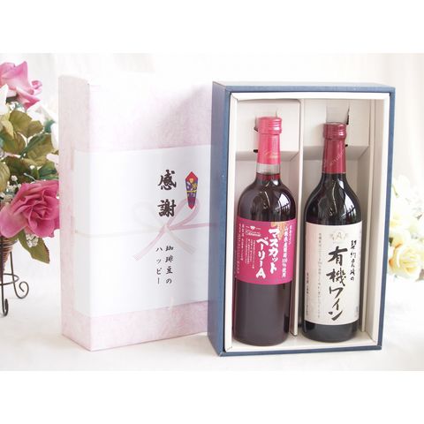 春の贈り物便り 感謝の贈り物ボックス 山梨県産葡萄マスカットベーリーA種使用ワインと酸化防止剤無添加ワイン2本セット(酸化防止剤無添加 契約農場の有機赤ワイン やや甘口(長野県)720mlマスカットベーリーA赤ワイン720ml