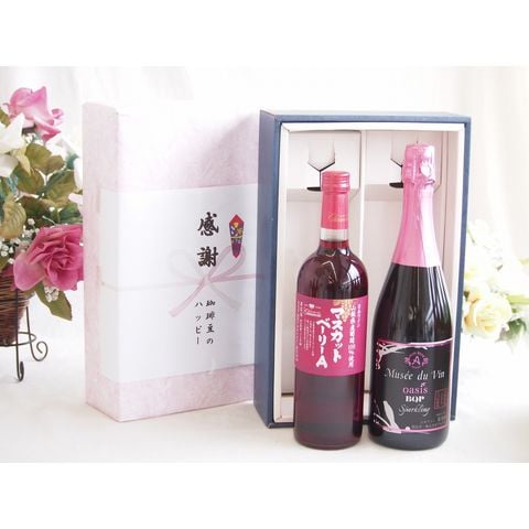 春の贈り物便り 感謝の贈り物ボックス 山梨県産葡萄マスカットベーリーA種使用ワインと国産ワイン2本セット(MdV オアシス ブラッククイーンピンクロゼスパークリングワイン辛口(長野県)750mlマスカットベーリーA赤ワイン720ml