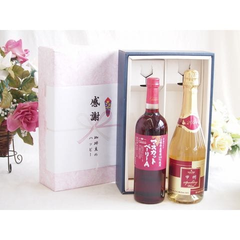 春の贈り物便り 感謝の贈り物ボックス 山梨県産葡萄マスカットベーリーA種使用ワインと国産ワイン2本セット(甲州スパークリング 白ワインやや辛口(山梨県)720mlマスカットベーリーA赤ワイン720ml