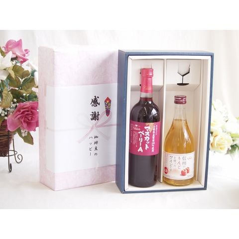 春の贈り物便り 感謝の贈り物ボックス 山梨県産葡萄マスカットベーリーA種使用ワインと国産ワイン2本セット(信州のりんごを使ったワインです甘口(長野県)500mlマスカットベーリーA赤ワイン720ml