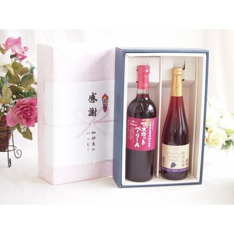 春の贈り物便り 感謝の贈り物ボックス 山梨県産葡萄マスカットベーリーA種使用ワインと国産ワイン2本セット(信州巨峰スパークリングワイン やや甘口(長野県)500mlマスカットベーリーA赤ワイン720ml