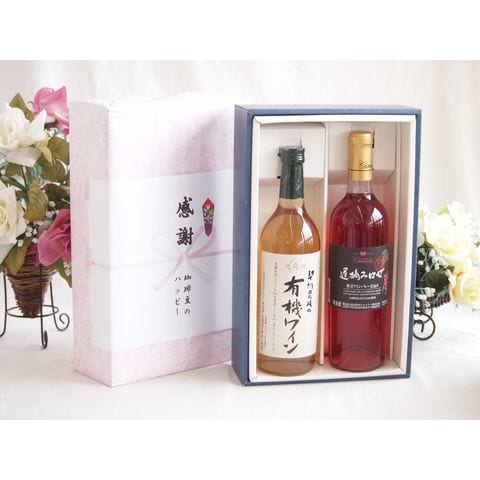 春の贈り物便り 感謝の贈り物ボックス有機栽培100%白ワインと国産ワインセット(遅摘みロゼ 完熟甘口ワイン 甘口(山梨県)720ml
