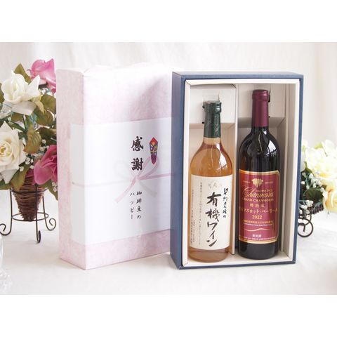 春の贈り物便り 感謝の贈り物ボックス有機栽培100%白ワインと国産ワインセット(樽熟成穂坂マスカットベーリーA赤ワイン ミディアム(山梨県)750ml