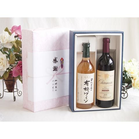 春の贈り物便り 感謝の贈り物ボックス有機栽培100%白ワインと国産ワインセット(グランシャンモリ アッサンブラージュ 赤ワイン 重口(山梨県)750ml