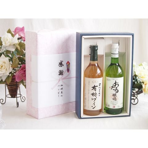 春の贈り物便り 感謝の贈り物ボックス有機栽培100%白ワインと国産ワインセット(おたる醸造 ナイアガラ 白ワイン やや甘口(北海道)720ml