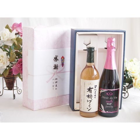 春の贈り物便り 感謝の贈り物ボックス有機栽培100%白ワインと国産ワインセット(MdV オアシス ブラッククイーンピンクロゼスパークリングワイン辛口(長野県)750ml