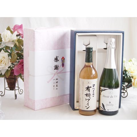 春の贈り物便り 感謝の贈り物ボックス有機栽培100%白ワインと国産ワインセット(MdV オアシス3 白スパークリングワイン辛口(長野県)750ml