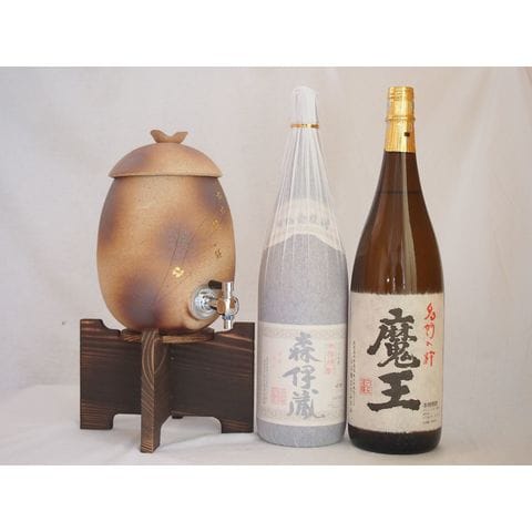 信楽焼・明山窯 焼酎サーバー 火色金小紋 2200cc(滋賀県)芋焼酎2本セット 森伊蔵1800ml 白玉醸造 魔王 1800ml(鹿児島)