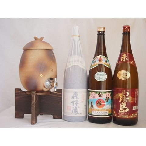 信楽焼・明山窯 焼酎サーバー 火色金小紋 2200cc(滋賀県)芋焼酎3本セット 森伊蔵1800ml 甲斐商店 伊佐美1800ml 赤霧島1800ml(鹿児島 宮崎)