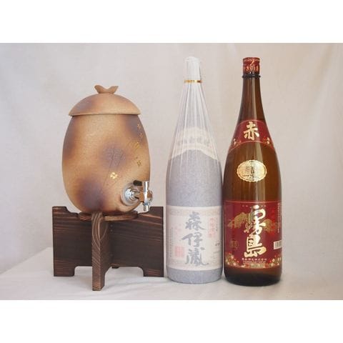 信楽焼・明山窯 焼酎サーバー 火色金小紋 2200cc(滋賀県)芋焼酎2本セット 森伊蔵1800ml 赤霧島1800ml(鹿児島 宮崎)
