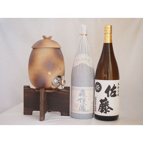 信楽焼・明山窯 焼酎サーバー 火色金小紋 2200cc(滋賀県)芋焼酎2本セット 森伊蔵1800ml 佐藤白1800ml(鹿児島)