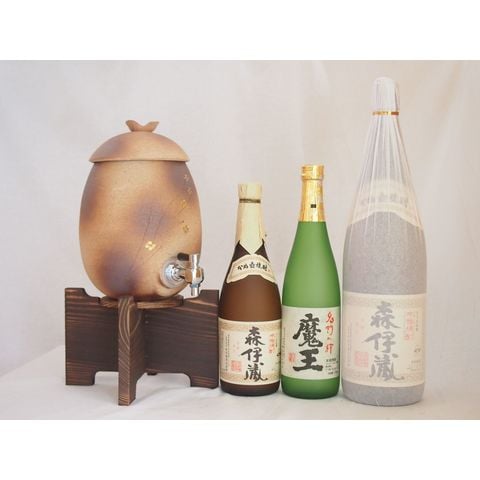 信楽焼・明山窯 焼酎サーバー 火色金小紋 2200cc(滋賀県)芋焼酎3本セット 森伊蔵720ml 1800ml 魔王720ml(鹿児島)