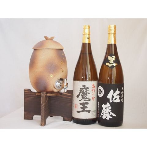 信楽焼・明山窯 焼酎サーバー 火色金小紋 2200cc(滋賀県)芋焼酎2本セット 魔王1800ml 佐藤黒 1800ml(鹿児島)