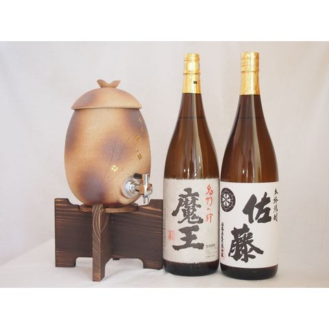 信楽焼・明山窯 焼酎サーバー 火色金小紋 2200cc(滋賀県)芋焼酎2本セット 魔王1800ml 佐藤白 1800ml(鹿児島)
